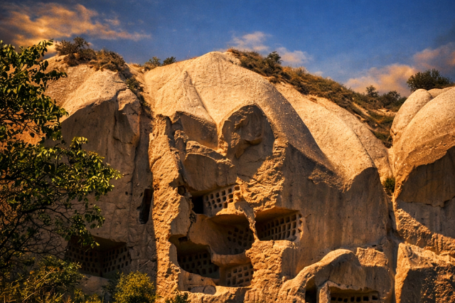 Daha çarpıcısı: Kapadokya kaya oyma güvercinlikleri zamanla sadece işlevsel değil, cepheleri boyalı bezemelerle süslenen bir halk sanatı alanına dönüşür. Bu bezemelerin tarih/üslup özellikleri 18. yüzyıl ve sonrasına işaret eder.